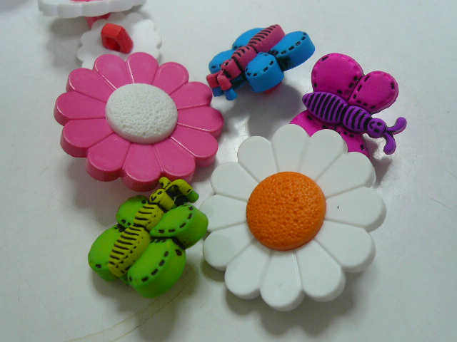 大小カラフルお花と蜂型のボタンです。