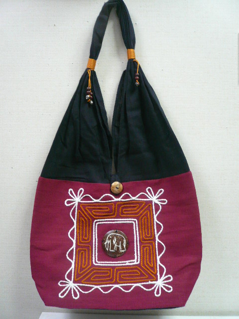 ホーム | ≪タイ雑貨≫バック/小物 > タイスタイル・バックタイ製コットンバック 刺繍象(エンジ)