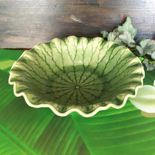 アジアティストたっぷりの蓮の葉っのモチーフのボール皿です。